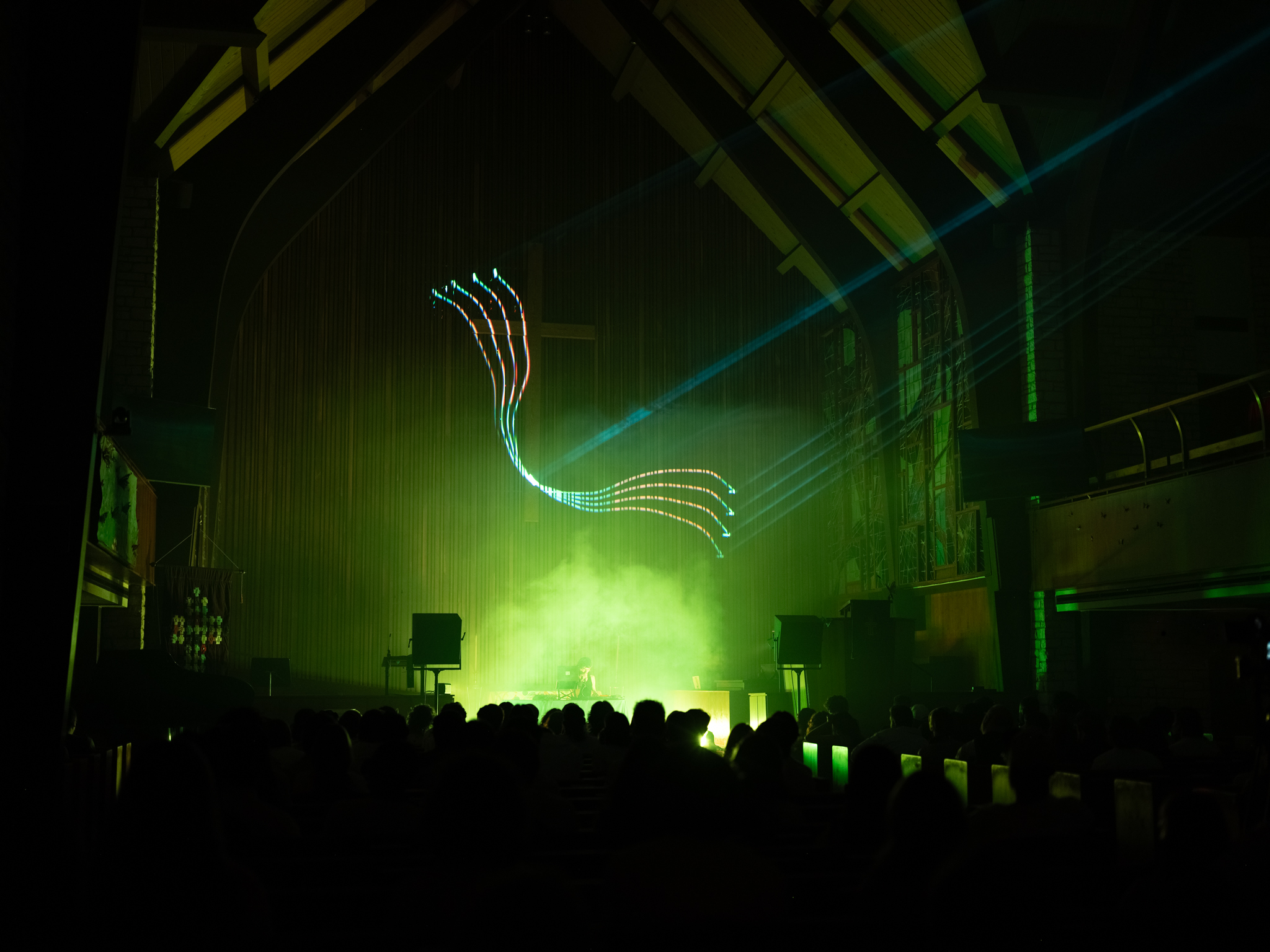 The new audio-visual experience is carried by the precision you’ve come to expect from projection designer 𝐁𝐞𝐧 𝐆 𝐑, newcomer 𝐏𝐚𝐧𝐨𝐩𝐭𝐢𝐤𝐨𝐧 𝐏𝐚𝐫𝐭𝐲, and audio engineer Vital Audio. A fine-tuned Danley system is elevated by the cathedral-like acoustics of the great hall, transforming sound into architecture.